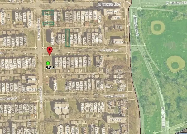 ENORMOUS DOUBLE CORNER LOT IN WEST GARFIELD PARK-JUST STEPS FROM GARFIELD PARK. RM-5 ZONING ALLOWS FOR MULTI-UNIT DEVELOPMENT! SEVERAL BUS LINES, BLUE AND GREEN LINE TRAINS NEARBY. A LOT OF NEW DEVELOPMENT IN THE SURROUNDING AREA.