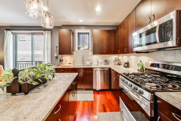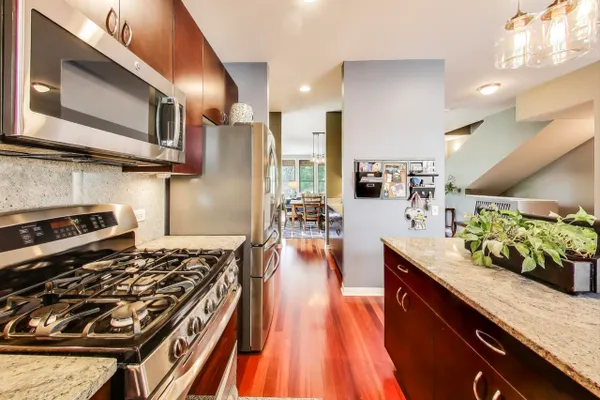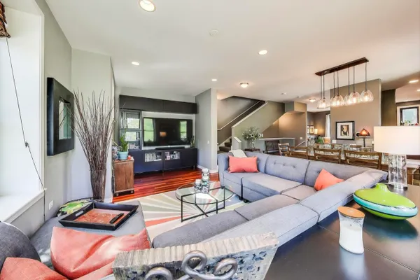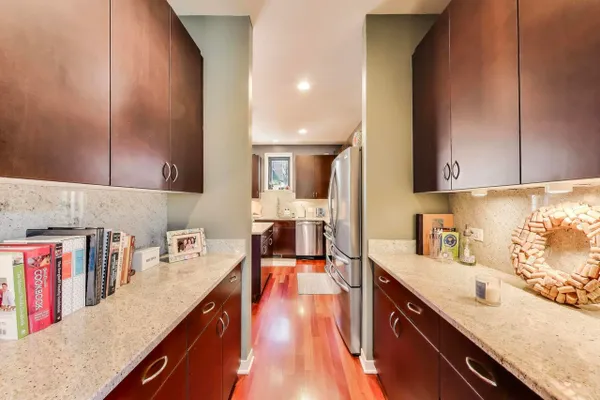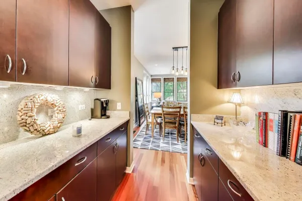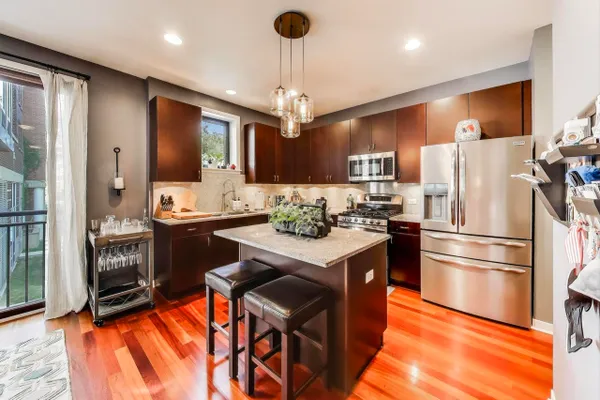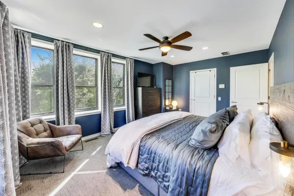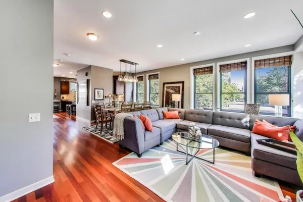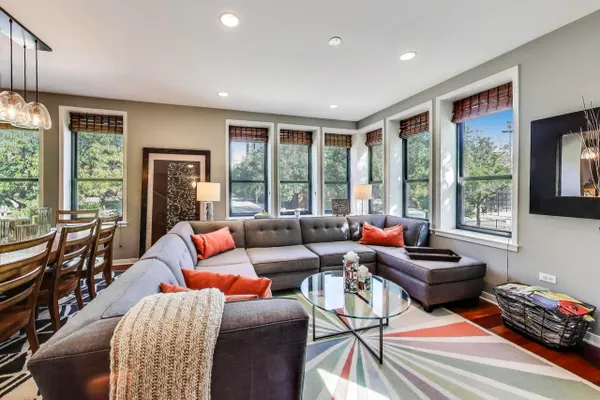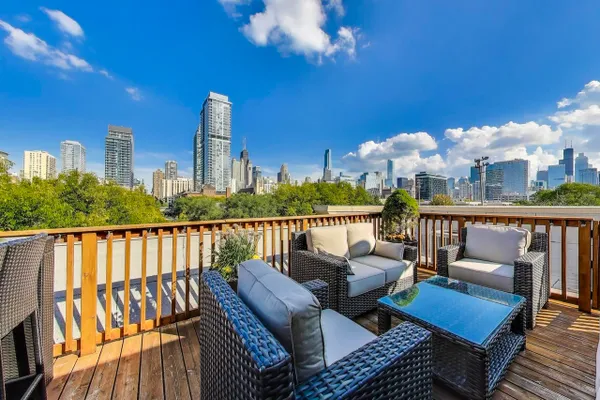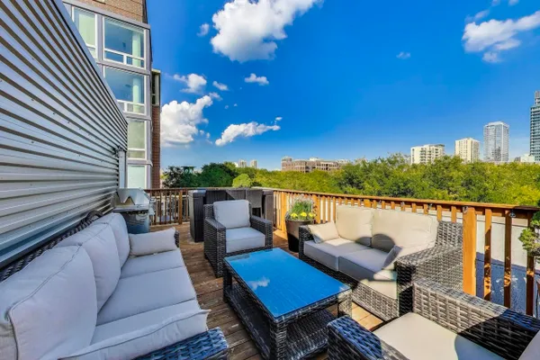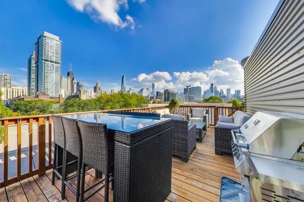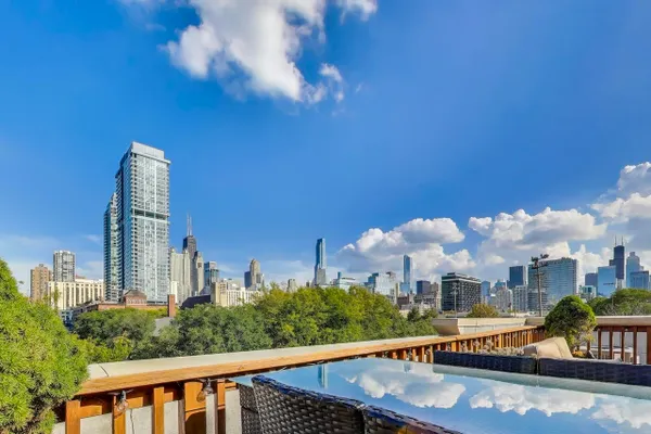 This sun-drenched, end-unit row home in Chicago's sought-after Old Town neighborhood offers breathtaking, unobstructed south, east and west views of expansive parkland. A true gem, this residence boasts an open, palatial common space featuring grand living and dining areas, a cozy family room, and a chef-inspired kitchen with granite countertops, stainless steel appliances, a center island, and a butler's pantry. Upstairs, you'll find three spacious bedrooms, two luxurious bathrooms-including a massive primary suite with an oversized en suite bath-and convenient laundry facilities on the same level. The main level offers a versatile den and full bathroom, ideal for converting into an en suite bedroom, perfect for an au pair or multi-generational living. An attached two-car garage adds to the convenience. Outdoors, enjoy an expansive, private rooftop deck with wide open north, south, and east panoramas including sweeping skyline views! A true entertainer's dream! All outdoor furnishings and a grill are included, making it move-in ready for the perfect alfresco experience. Don't miss out on this rare combination of space, views, and location!